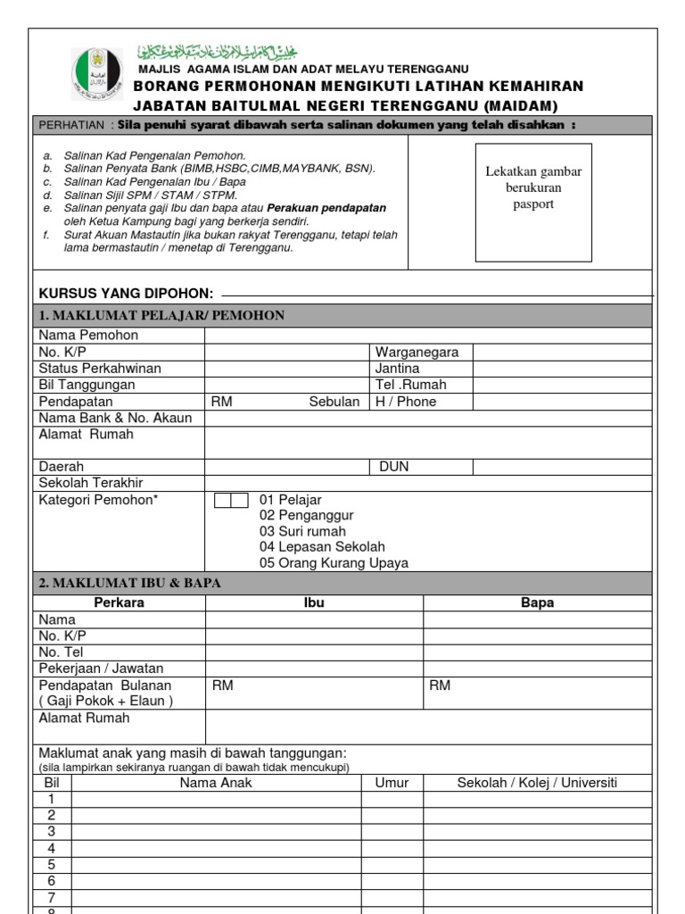Semak Borang permohonan Semakan Maidam Terengganu 2022 termasuk. Majlis Agama Islam dan Adat Melayu Terengganu Pusat. Bantuan Kem Akademik Pelajar Sekolah.